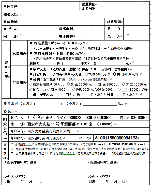 2017第六届中国(西安)老龄产业暨中医药健康养生博览会申请表 (代合同书)
