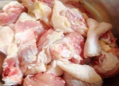 1、首先我们从市场上购买一只新鲜的小公鸡,然后回家之后将公鸡清洗干净,剁成块放在一边备用。